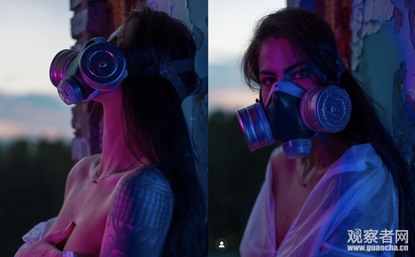 13日,她又發表了另外兩張同樣性感風格,帶着防毒面具的照片。
