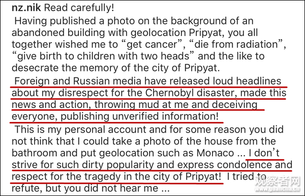 剛為切爾諾貝利核電站“不雅照”道歉,俄羅斯模特又改口了