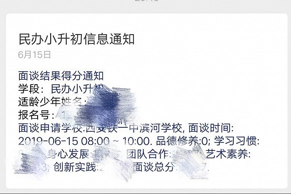 西安一民辦中學組織“小升初”面談,多名學生品德修養考項得0分