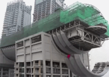 先在地面拼裝完畢後,再用起重機吊到近300米的高空,與大樓連接形成廊橋,這個操作也讓工程第N+1次喜提“世界之最”。