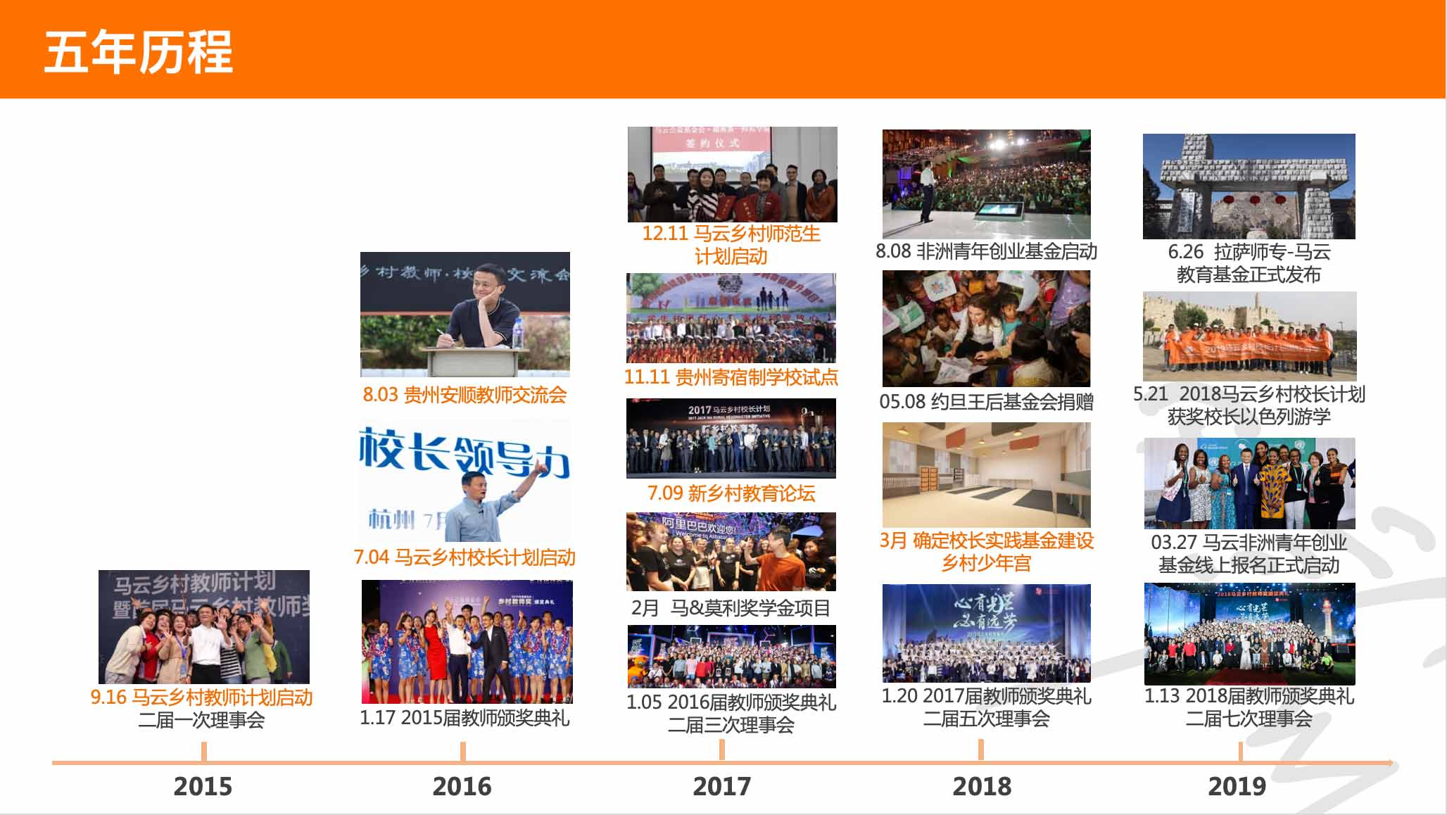 2014年12月,浙江馬雲公益基金會正式註冊成立。該基金會由馬雲個人發起並捐贈成立,重點關注教育發展領域,尤其是作為中國教育重要組成部分的鄉村教育。