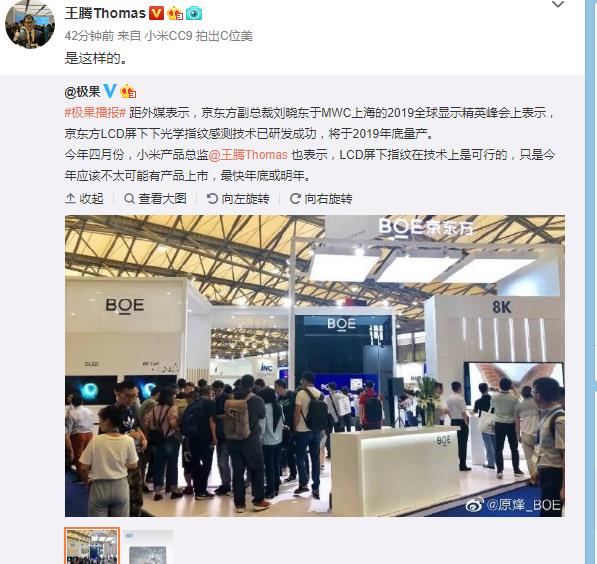 不過技術研發完成並不代表相關產品就能很快上市,即便LCD屏下指紋識別技術成功了,還需要一個過程,此前小米產品總監王騰就表示LCD屏下指紋在技術上是可行的,只是今年不太可能有產品上市,最快今年底或者明年。