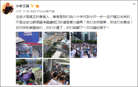 30日晚,香港著名導演王晶和身在橫店的羅家英也在微博上發佈了數張集會照片。