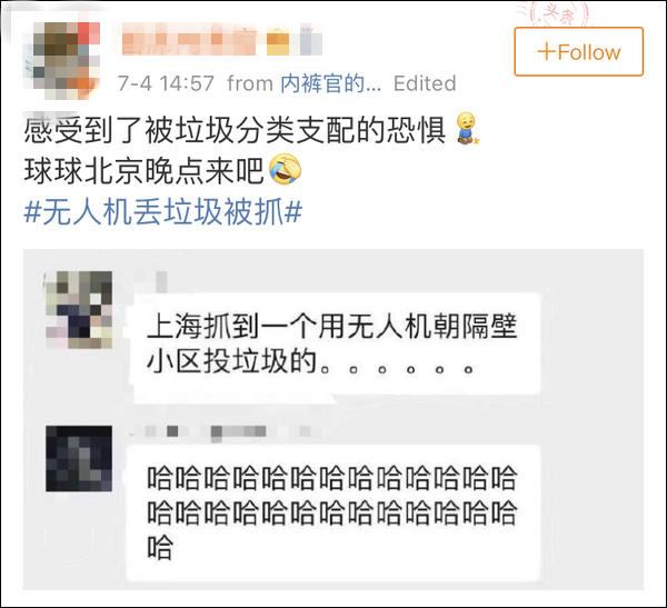 7月的第一天,“史上最嚴”垃圾分類《上海生活垃圾管理條例》正式實施,居民們開始努力適應垃圾分類帶來的變化。然而日前,這則“無人機丟垃圾被抓”的消息開始在網上傳播,引起了網友熱議。