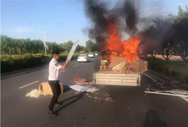 在這危急時刻,徐文建停下車,拿出自己車上的滅火器進行滅火,並第一時間撥打了119報警, 由於小貨車拉的全都是紙箱和木材,火勢太大,很惋惜最終沒有把火撲滅。