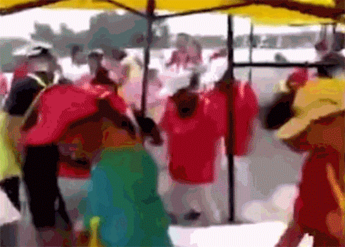 這段網友提供的視頻中,只見一羣身穿紅色服裝的大媽,在一處疑似馬拉松補給站的地方四散哄搶。大量瓶裝飲用水被捲走,現場亂七八糟,一片狼藉。