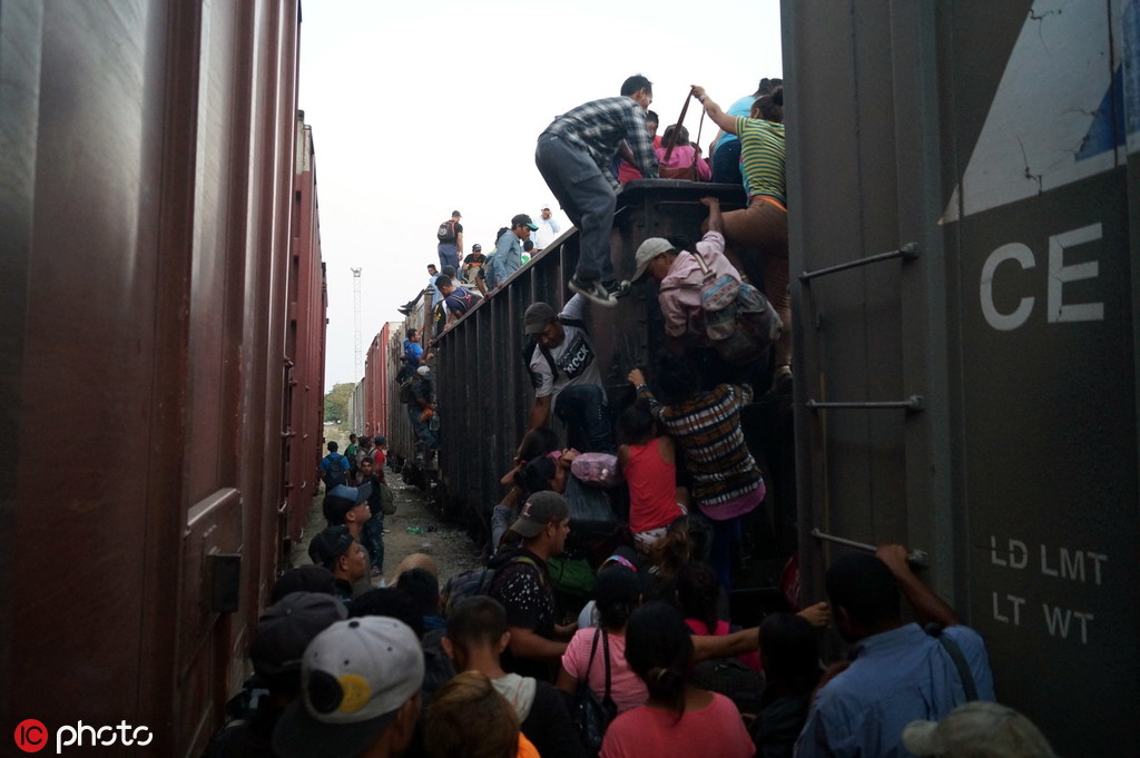 中美洲移民從墨西哥爬上火車欲前往美墨邊境(圖片來源:IC photo)