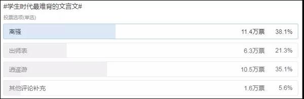 在一項超30萬人的微博投票中,三篇背誦難度最大的文言文脱穎而出,分別是《離騷》《逍遙遊》和《出師表》。