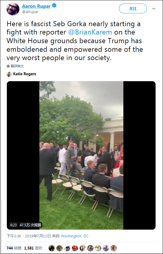 之後,白宮保安過來攔住了戈爾卡,後者在特朗普擁躉中的歡呼聲中,離開了卡仁。