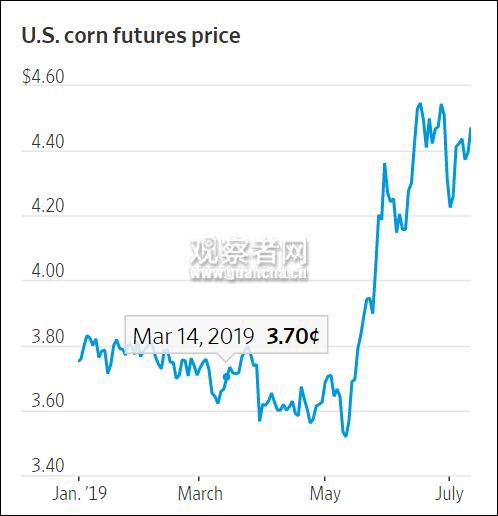 瘋狂囤貨導致市面玉米存在供給失衡風險,芝加哥期貨交易所(CBOT)玉米期貨今年一路走高,近三月來暴漲22%。