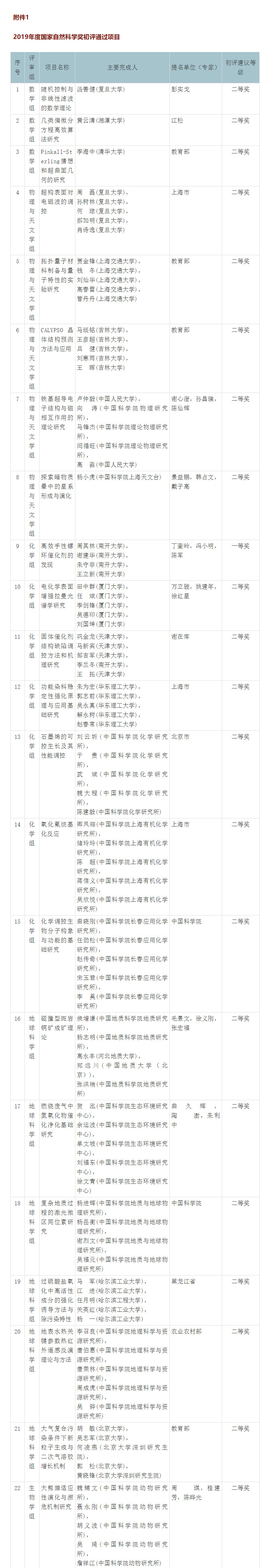 2019年度國家科學技術獎初評工作已經結束。根據《國家科學技術獎勵條例實施細則》的規定,現將初評通過的53項國家自然科學獎項目、56項國家技術發明獎通用項目、152項國家科學技術進步獎通用項目在科技部網站(http://www.most.gov.cn)和我辦網站(http://www.nosta.gov.cn)公佈。初評通過的20項國家技術發明獎專用項目和43項國家科學技術進步獎專用項目在委託管理單位、提名單位及項目完成單位等進行內部公佈。
