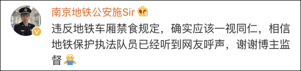 隨後警務大V@南京地鐵公安施Sir 發文解釋稱,涉事工作人員應為地鐵公司下屬地鐵保護辦公室執法大隊隊員,不屬於地鐵警方管轄。