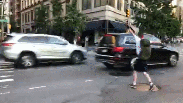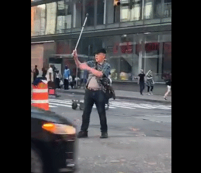 為了保證交通安全順暢,不少市民主動擔當起了“臨時交警”。比如,“這位拿着枴杖的男人,就是第8大道和第57大道的MVP。”