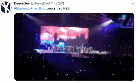 停電當晚,美國女星詹妮弗•洛佩茲正在麥迪遜廣場花園表演。然而,她只唱了三首歌,就停電了。有觀眾拍下了舞台停電這一幕,現場尖叫聲、呼喊聲一片。