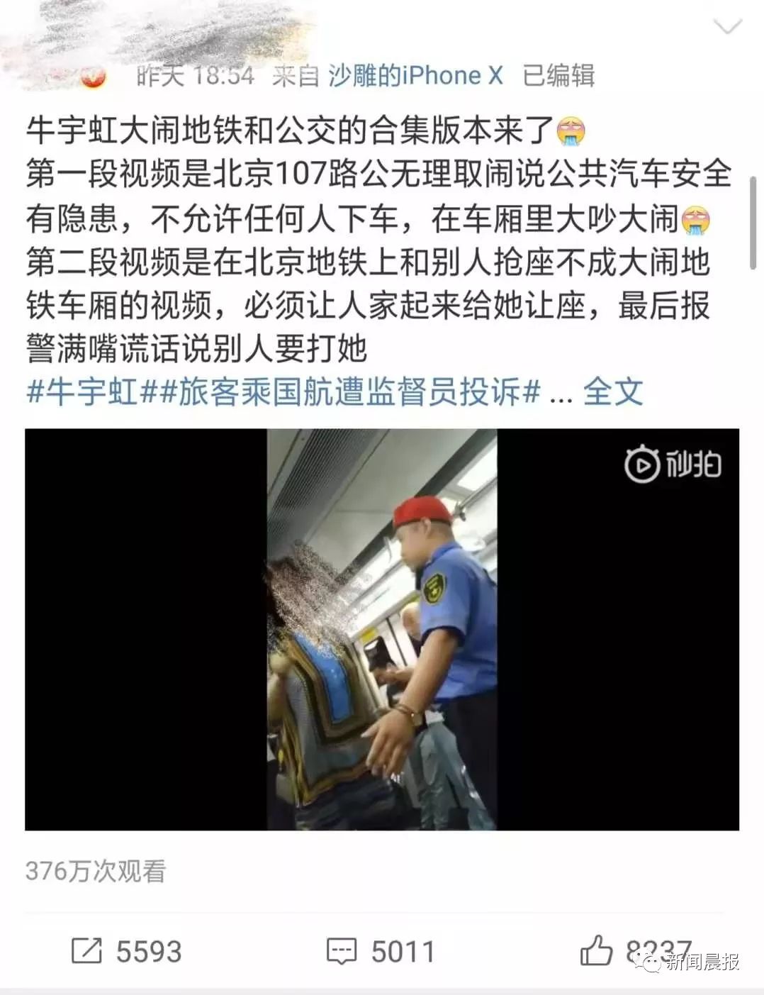 14日,有網友po出兩段牛宇虹曾大鬧地鐵和公交車的視頻,且兩段視頻中牛宇虹的態度都非常的囂張。