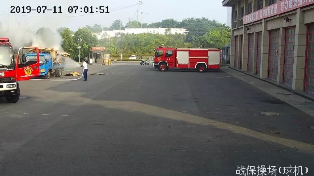 7月11日,一輛小貨車夾着滾滾濃煙,衝進江蘇鎮江市消防支隊大院裏。
