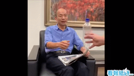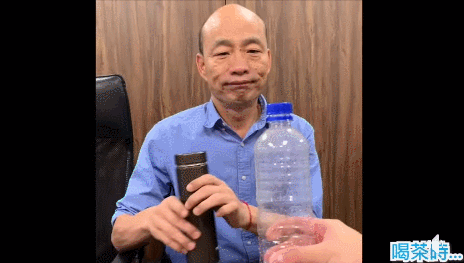 而花絮裏顯示,每次用頭開瓶蓋時,韓國瑜都試了好幾次才成功。