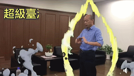 隨後,韓國瑜釋放“大招”,試圖化身“超級賽亞人”,在礦泉水瓶前認真地深呼吸運氣,接着大吼一聲“嘿!”,可是,他並沒有開始後旋踢,而是原地出腿踢向瓶蓋,尷尬的是,第一腳還沒能成功……