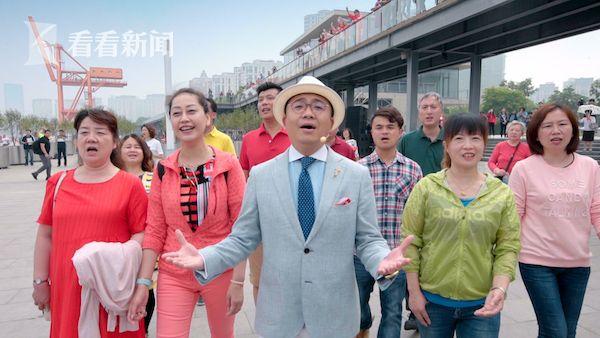 在徐匯濱江,人們享受着假日的悠然時光。“我和我的祖國,一刻也不能分割……”天籟般的童聲響起,人們循聲張望,驚喜接踵而至:上海音樂學院教授方瓊、主持人夏磊、上海京劇院國家一級演員王珮瑜、籃球運動員劉煒,四位熟悉的面孔在人羣中出現,與上海師範大學合唱團、南洋模範中學交響樂團、徐彙區愛菊藝術小學童聲合唱團、全國勞模、中科院院士,以及徐彙區的先進代表等共同唱起《我和我的祖國》。“東南有勝地,自古多繁華,海上慶昇平,開國萬民歡”,王珮瑜的四句京劇唸白,道出了人們的共同心聲。