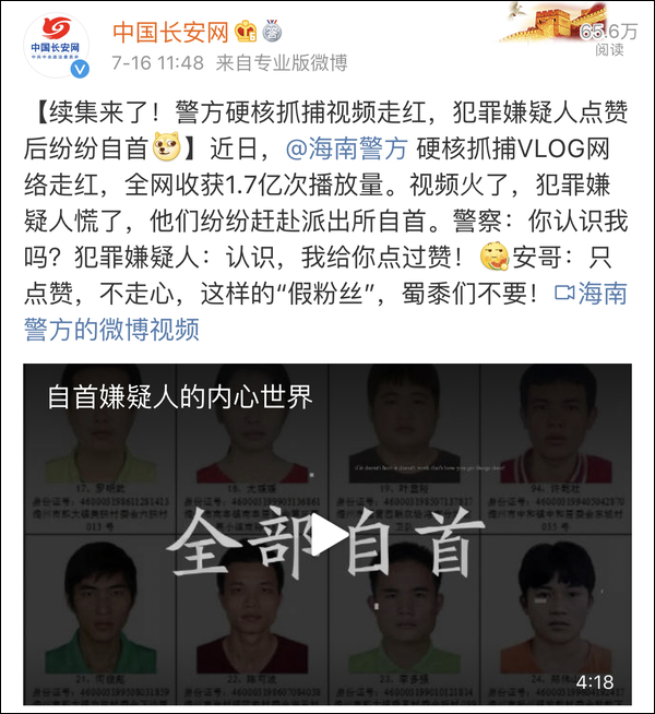 7月8日,海南儋州警方發佈了全網首個警方抓捕Vlog。