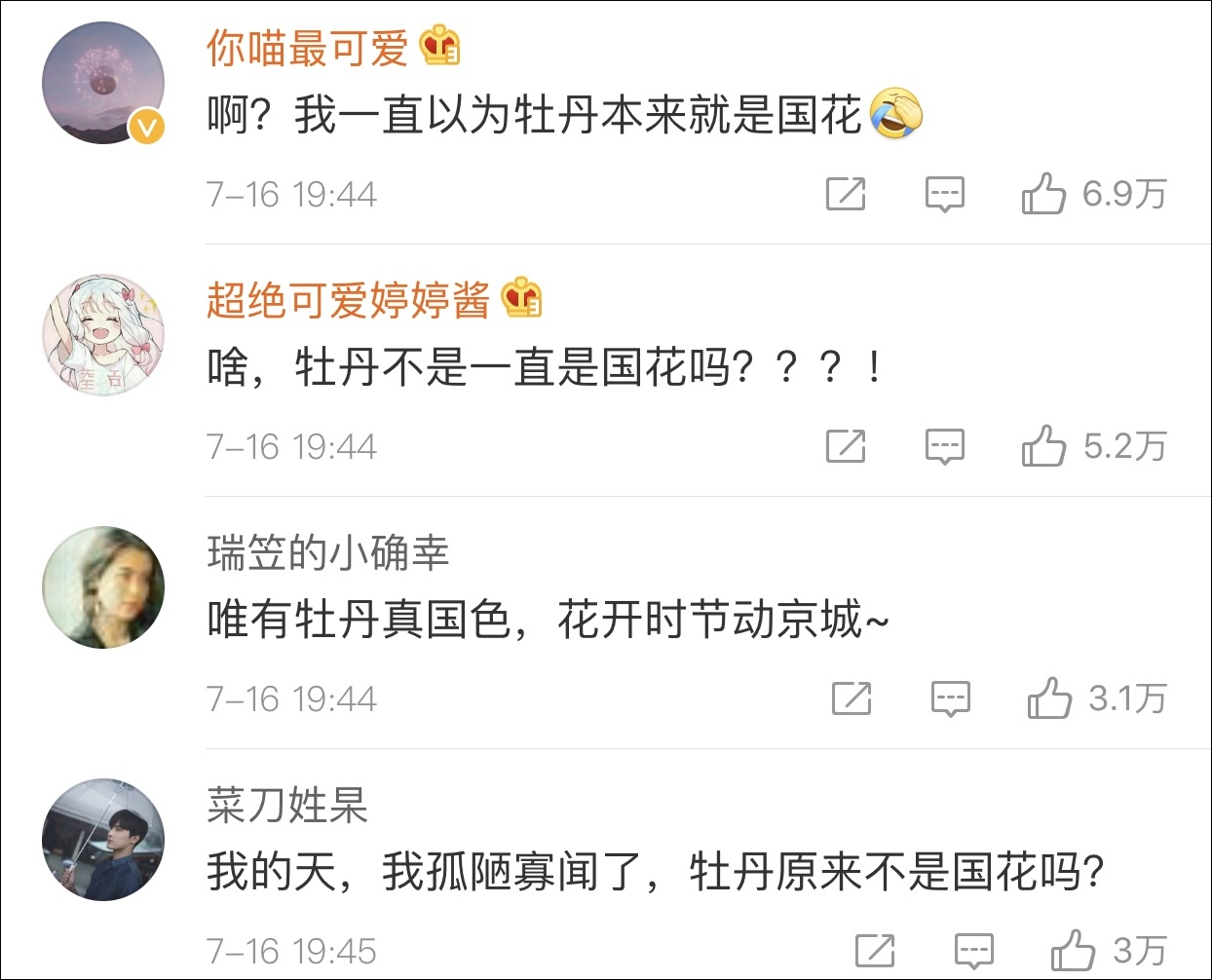 財經網發起的投票中,超過半數網友“一直以為牡丹就是國花”;
