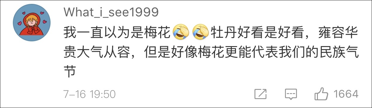 觀察者網注意到,也有網友認為,除了牡丹,還有很多花朵也可以作為備選,比如梅花;