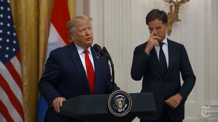 18日,特朗普在白宮講話 《紐約時報》視頻截圖