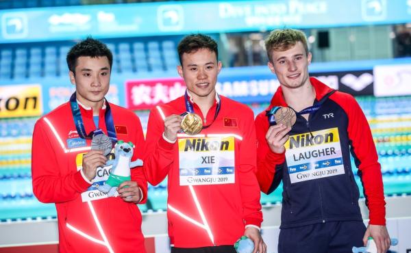 據澎湃新聞報道,7月18日,2019年國際泳聯游泳世錦賽繼續在韓國光州進行。在當晚進行的男子三米板決賽中,中國“雙保險”謝思埸、曹緣上演驚險逆轉,他們直到最後一跳才超越拉夫爾分獲冠亞軍,實現中國跳水在該項目上的七連冠。同時,中國跳水隊包攬前七個比賽日的全部10金。