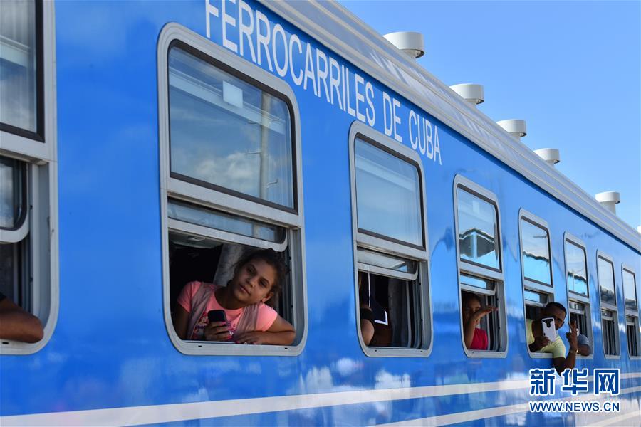 2019年7月13日,在古巴首都哈瓦那,乘客們坐在一列由中國設計並生產的鐵路客車組成的列車上。新華社記者 朱婉君 攝