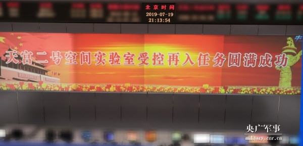 2019年7月19日21時,天宮二號空間實驗室圓滿完成任務,再入大氣層,少量殘骸落入指定海域。
