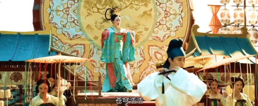 這時無數百姓大喊“許鶴子”,那場面與現在明星演唱會也差不了多少,之後鏡頭裏出現了一位絕色佳人,她就是大家口中的許鶴子,也是當年民間最火的藝人。只見許鶴子身穿華服,緩緩登上花車,所有人都屏息以待,就連旅賁軍都安靜地觀看她的表演。