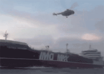 伊朗伊斯蘭革命衞隊20日公佈的一段視頻顯示,伊斯蘭革命衞隊快艇包圍了當時明顯在全速前進的“史丹納帝國”號油輪,期間,伊朗海軍得到一架軍用直升機的支援,這架直升機引導一支突擊隊降落在油輪甲板上。