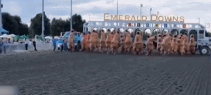 7月初,美國華盛頓一賽馬場就舉行了一場別開生面的比賽,25名選手化身“霸王龍”賽跑。