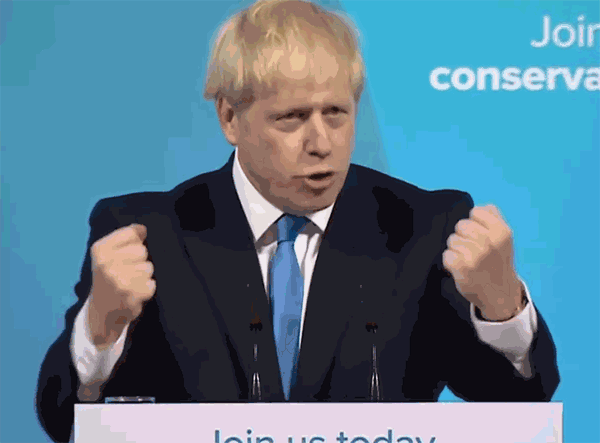 在獲勝演講中,約翰遜把英國比作沉睡的巨人,並表示要在10月31日前幫助英國完成脱歐。除此之外,他還像開機關槍一樣立了一大堆flag。