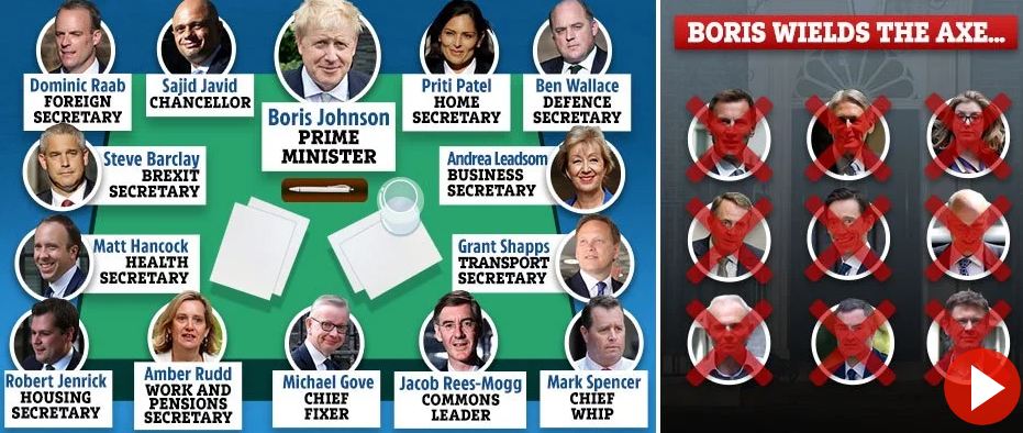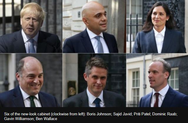 BBC表示,梅的內閣已經共有17人被免職或辭職。約翰遜給新內閣換上了自己人,《衞報》認為,這些人都是些脱歐派人士或右翼分子,這表明了約翰遜實現脱歐的決心,但也引發人們的擔憂。