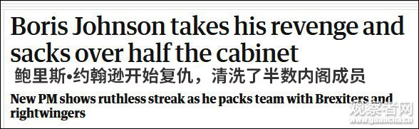 此前跟約翰遜一起競爭首相之位的對手亨特和他的支持者們成了這次“換血”的受害者,當然,一起被換掉的還有約翰遜政策的一些批評者。《衞報》將約翰遜的行動稱為“復仇”。