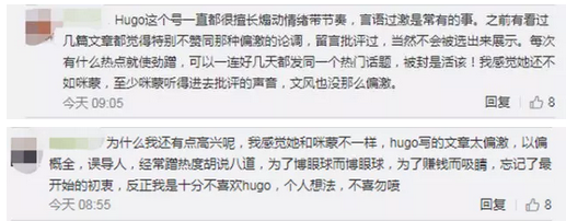 在知乎討論“如何評價公眾號HUGO?”下,對該公眾號的批判較多。