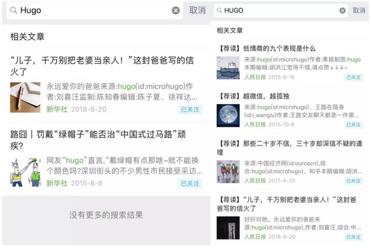 “Hugo”成為繼“咪蒙”之後消失的又一個自媒體大號,巧合的是,HUGO與咪蒙有很多相似處:用户羣體均以女性為主,內容均以緊隨熱點的情感話題為主,標題具有顯著的標題黨特性,因此被外界稱為“咪蒙2.0”。