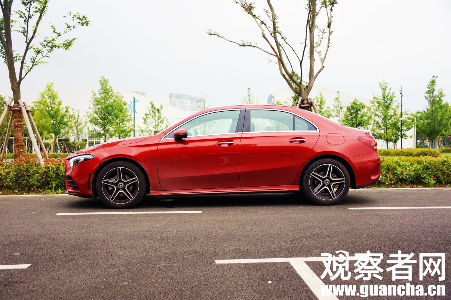 從車身側面可以看出,A級三廂版與CLA級有較高的相似度