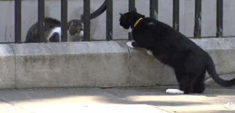 廢也就算了,偏偏Larry又是個愛惹事的主,三天兩頭找隔壁外交部的“捕鼠總管”黑貓“Palmerston”打架。
