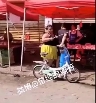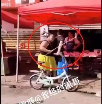 事發當時,一位男子正在買肉,該女子則手持直播專用手機,不斷在男子的背後蹭來蹭去,先用自己的面龐貼近男子後背,隨後扭起腰肢,來了一段貼身熱舞。