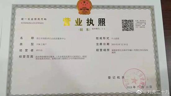 7月27日下午,晉江市市場監督管理局相關負責人向澎湃新聞發來《情況通報》。《情況通報》稱,近日,該局掌握卓某山涉嫌提交虛假材料註冊登記個體工商户執照的案件線索:當事人卓某山(男,洛江馬甲人)日前通過“個體工商户全程智能化登記系統”將涉該市某政府機關相關地址自助申請為私人經營場所。