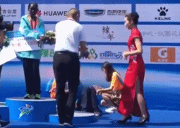 但據微博網友@運動分子 爆料,女子組頒獎禮上,季軍體力不支暈倒在頒獎台上。