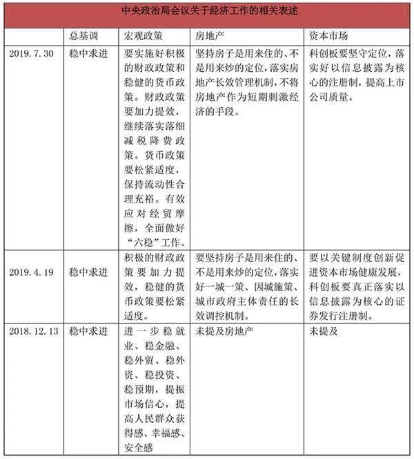 去年7月政治局會議首提“六穩”(穩就業、穩金融、穩外貿、穩外資、穩投資、穩預期),此後於當年10月、12月的兩次會議中均提到進一步做好“六穩”工作。今年4月份政治局會議並未提及“六穩”,但此次“六穩”再次被提及,凸顯出經濟下行壓力加大背景下,穩增長的重要性。