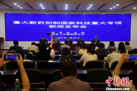 中國科學技術部會同國家衞生健康委員會31日在北京舉行“重大新藥創制”國家科技重大專項(新藥創制專項)新聞發佈會,集中發佈該專項近兩年來的重大成果顯示,截至2019年7月,累計139個品種獲得新藥證書,其中1類新藥44個,這一數量是專項實施前的8倍。