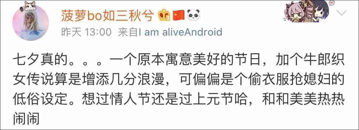 而現在的教材裏,牛郎織女的故事是把精華糟粕一把抓,也沒有對情節進行價值辨析,還因為它披着“經典傳統文化”的外衣,教材編修的時候,也沒有進行修改,就默認正確,直接印上去。
