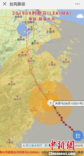 中新網10日消息,電據中央氣象台消息,今年第9號颱風“利奇馬”(超強颱風級)的中心已於10日1時45分在浙江省温嶺市城南鎮登陸,登陸時中心附近最大風力有16級(52米/秒),中心最低氣壓930百帕。