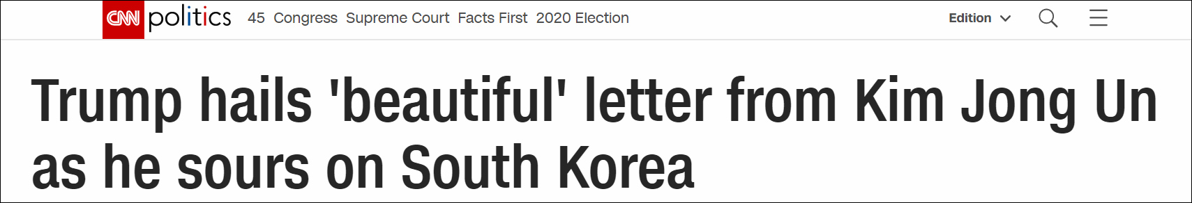 特朗普稱,這封“親筆信”整整“三頁長”,是一封非常“美好”、非常“積極”的信件。但他也提到,金正恩在信中表達了對美韓聯合軍演的不滿。
