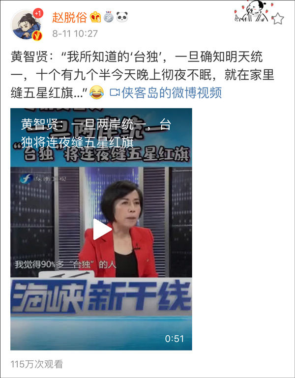 今天(8月11日),“台灣名嘴”黃智賢的一段視頻讓廣大網友齊聲哈哈哈: