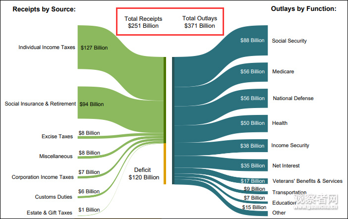 值得一提,白宮預測的全年赤字規模,比國會預測的要高:後者僅為8960億美元。